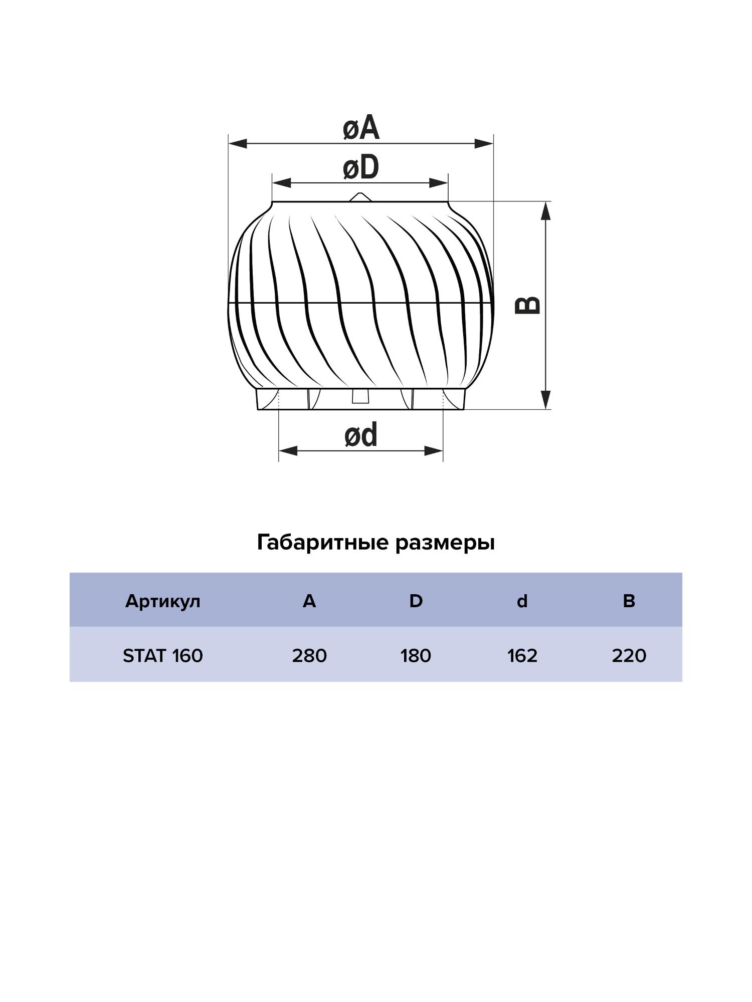 STAT 160 является экологичным решением, так как работает без электричества — от ветра, а также за счёт разницы температур. Способствует удалению загрязненного воздуха и избыточной влажности из помещений и подкровельного пространства. Нормализуют циркуляцию воздуха в помещении. Создает дополнительную тягу в вентканале, препятствует попаданию в канал атмосферных осадков, птиц, мусора. Устойчивы к окисл